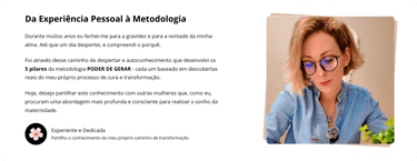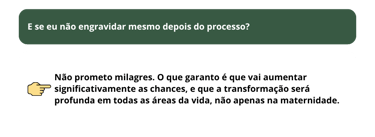Além de aumentar as suas possibilidades de concepção, a minha metodologia promove transformações profundas que impactam todas as áreas da sua vida.