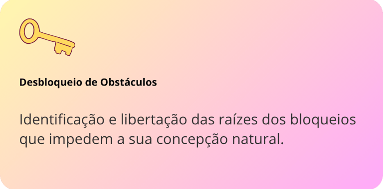 Identificamos e trabalhamos as raízes dos bloqueios emocionais, mentais e energéticos que podem estar impedindo sua gestação.