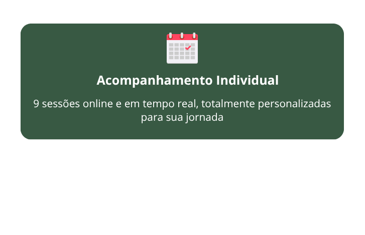 A minha metodologia única de acompanhamento individual, online e em tempo real, estruturada em 9 sessões baseadas em 5 pilares fundamentais para o autoconhecimento e desbloqueio dos obstáculos internos.